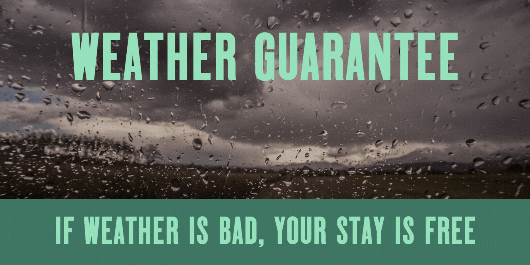 Add weather coverage to your trip and get money back if the weather is less than ideal. Coverage is available in the confirmation email of your reservation.
